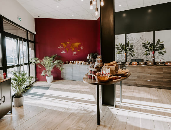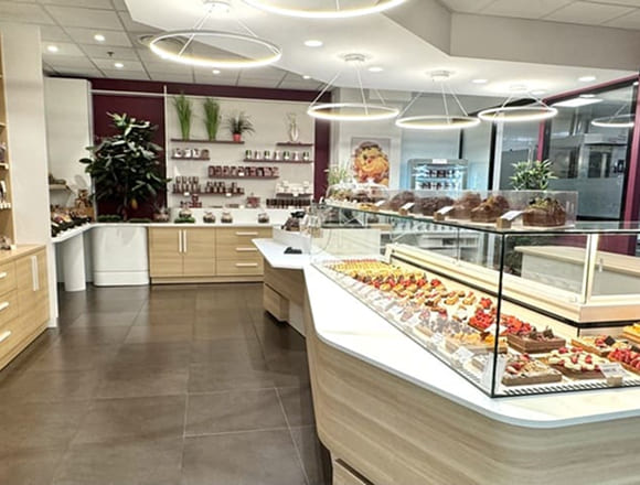 Dans notre pâtisserie-chocolaterie à Ceyrat, qui propose une sélection de nos produits dans un cadre gourmand.