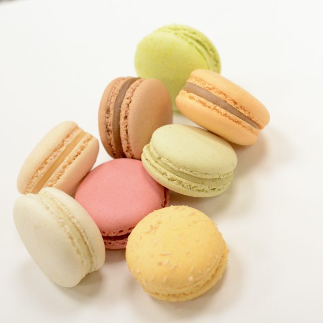 Les macarons sont préparés à la main, avec une coque légère, des garnitures maison et un vrai travail de goût. Chocolat noir, praliné, fruit de saison, noisette ou agrumes, les parfums évoluent régulièrement.