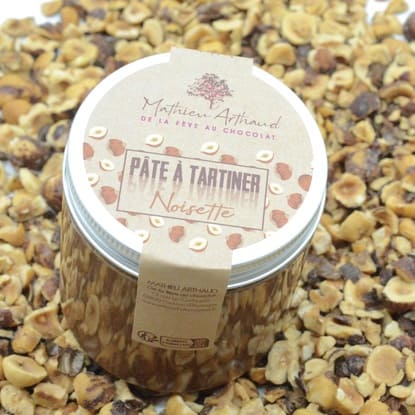 Les pâtes à tartiner et confitures proposées par Mathieu Arthaud Chocolatier sont fabriquées dans notre atelier de Cournon-d’Auvergne, avec une attention particulière portée à la qualité des matières premières et à la simplicité des recettes.